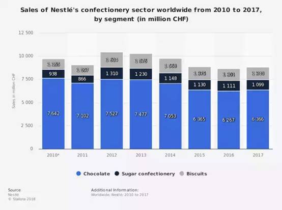 自 2012 年以來,隨著消費者減少垃圾食品和含糖食品的攝入,雀巢的甜食業(yè)務(wù)整體也呈下降趨勢,今年它還把旗下三個糖果品牌賣給了意大利巧克力制造商費列羅。